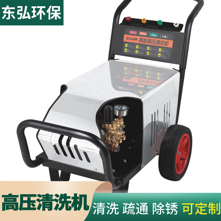 高壓清洗機,是通過動力裝置使高壓柱塞泵產生高壓水來沖洗物體表面的機器。它能將污垢剝離,沖走,達到清洗物體表面的目的。因為是使用高壓水柱清理污垢,所以高壓清洗也是世界公認科學、經濟、環(huán)保的清潔方式之一。 高壓洗衣機是一種高壓水射流清洗設備,它加水加壓至足夠的壓力,并使用高壓水清洗污垢